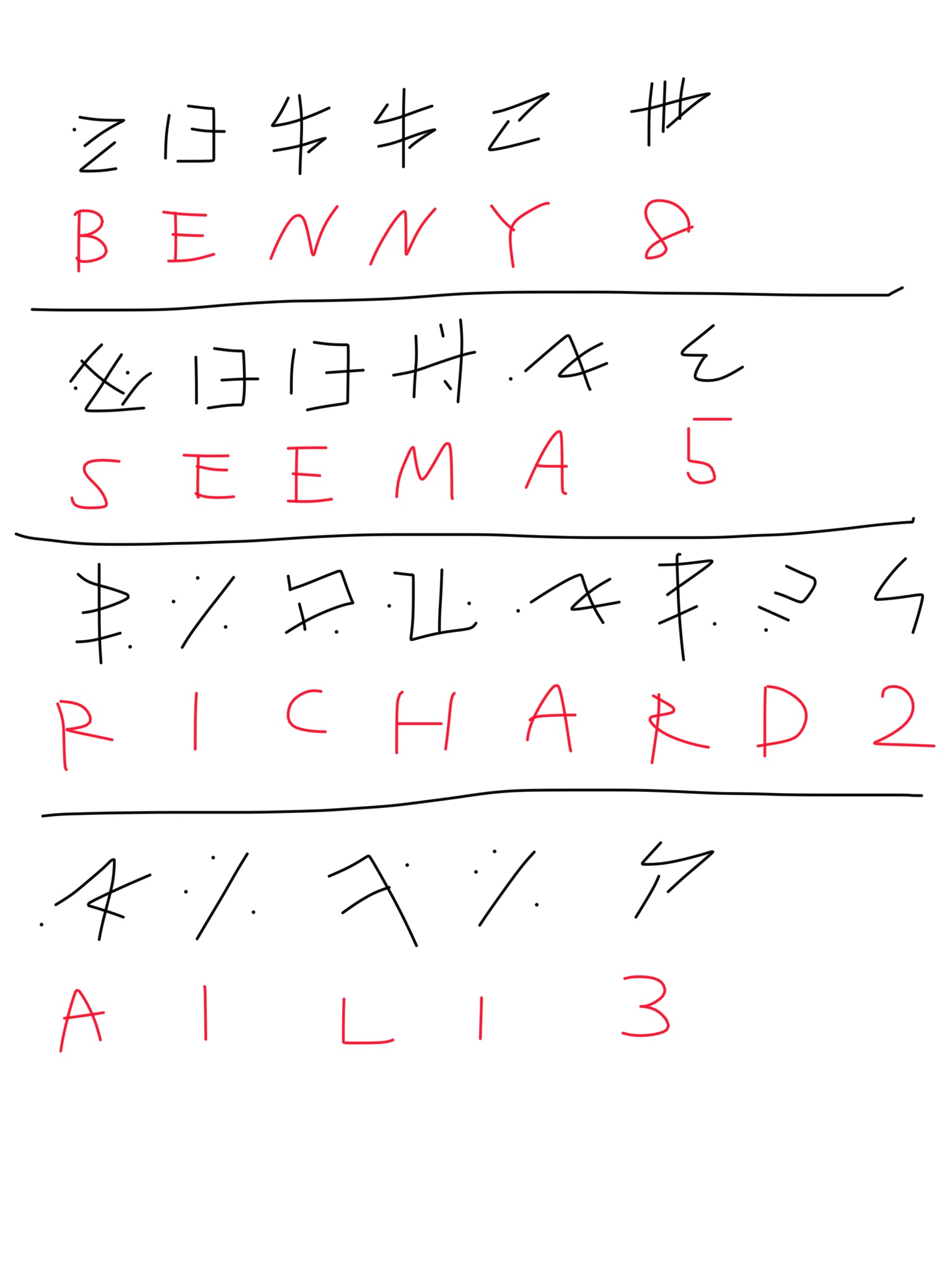 その記号のような文字を1)2)ともに、丁寧にメモっておきましょう。
